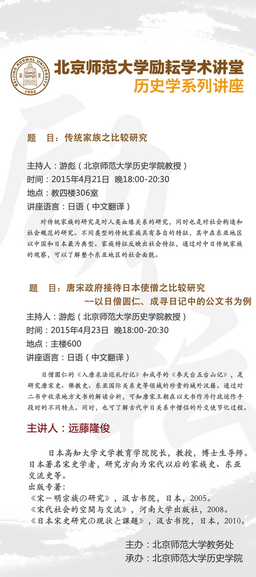 【励耘讲堂】远藤隆俊:唐宋政府接待日本使僧之比较研究--以日僧圆仁、成寻日记中的公文书为例