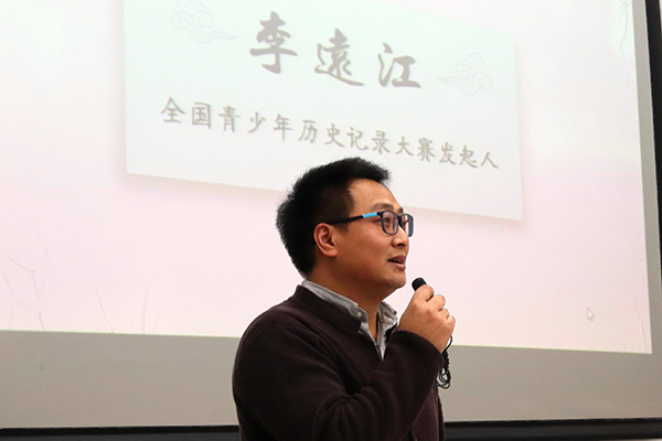 到场嘉宾对往届家史征文大赛的举办表示了高度肯定,为在场观众分享了对于口述史和家史写作的看法,并在史料选取、交流方式等问题上和同学们进行了深入浅出的探讨。李远江老师为初次写家史的同学就采访态度、考证方法、写作风格等问题提供了宝贵建议,鼓励同学们大胆写作,谨慎求证。孙会修老师结合自己做家史采访的经历,提醒同学们注意家史内部的传承和家史与国史的深刻联结,注重口述史料和文字史料的互证。现场互动气氛热烈。嘉宾们在解答问题的同时也鼓励同学们积极参加家史征文大赛,书写家族的历史。下午5时左右活动进入尾声,工作人员向到场嘉宾赠送纪念品并合影留念,活动至此圆满成功。