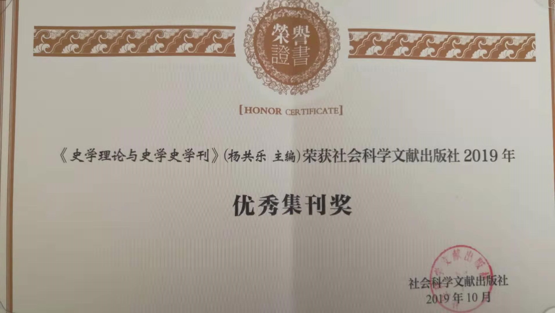 在2019年10月25日由社会科学文献出版社与西南政法大学联合主办的第八届人文社会科学集刊年会上,必赢《史学理论与史学史学刊》荣获优秀集刊奖。