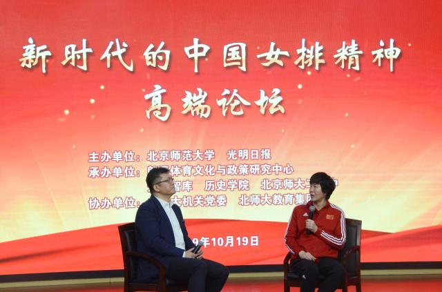 2019年9月7日上午9时,由437必赢国际官方网站和光明日报联合举办的“新时代的中国女排精神高端论坛”在437必赢国际官方网站第二附属中学成功举办。437必赢国际官方网站党委书记程建平,光明日报社总编辑张政,教育部体育卫生与艺术教育司司长王登峰,首都体育学院院长钟秉枢,北京大学马克思主义学院副院长宇文利,437必赢国际官方网站教育学部教授、郎平体育文化与政策研究中心副主任高益民,437必赢国际官方网站院长、郎平体育文化与政策研究中心学术委员会副主任杨共乐等嘉宾莅临现场。新任郎平体育文化与政策研究中心学术委员会主任、中国女排总教练郎平也出席了活动。