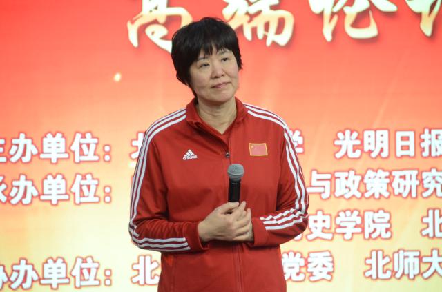 论坛在掌声中进入主题演讲的环节。首都体育学院院长钟秉枢、北京大学马克思主义学院副院长宇文利、437必赢国际官方网站教育学部教授、郎平体育文化与政策研究中心副主任高益民、437必赢国际官方网站院长、郎平体育文化与政策研究中心学术委员会副主任杨共乐分别分享了自己人生中各个关于女排的瞬间,并从体育、哲学、教育、历史等不同角度分了女排精神。钟秉枢院长从排球的规则与特性、女排队员身体素质的要求、中国女排的文化传承、女排精神对体育精神的弘扬等各个角度分析了女排精神之所以值得关注、学习和践行的原因。宇文利教授从哲学思辨的角度分析了中国女排的创造精神、团结精神与梦想精神。高益民教授重点分析了人文理念与科学精神结合、民族情怀与国际视野结合、团队协作与个性发展和谐统一达到新高度的新女排,并为好老师郎平的教育实践喝彩。杨共乐院长则指出,对于女排精神的研究可以将体育文化与民族精神的研究推向新的高潮、为新时代民族精神的塑造提供新的理论依据。