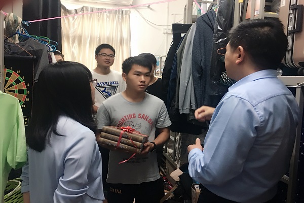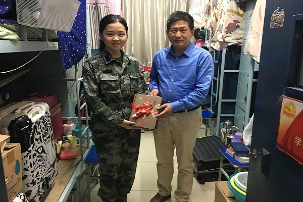 响应国家应征入伍号召,今年必赢共有两名本科生顺利入伍,分别是2016级本科生杨宇和2015级本科生张颖。学院分党委对此高度重视,分党委书记郭家宏、分党委副书记王卓凯、2016级本科班班主任倪滕达、2015级本科班班主任江天岳和专职辅导员李力专程到宿舍走访慰问了两名入伍大学生。