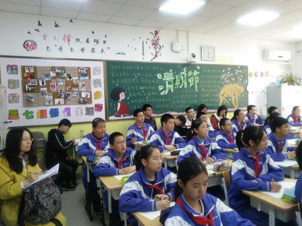 抵达广渠门中学后,广渠门中学的负责教师将同学们分为两部分,一部分同学到高中部听高一历史课程,另一部分同学到初中部听初一历史课程。但相同的一点是,两部分都是常规课,事前并没有过多的修饰与排练,更易于使同学们感受到真实的日常教学情境。