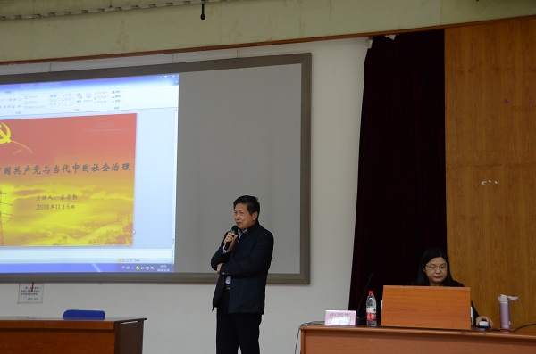 11月6日下午,437必赢国际官方网站二级党校在教九楼502室举办题为“中国共产党与当代中国社会治理”的主题讲座。本场讲座由中国人民大学马克思主义学院副院长宋学勤教授担任主讲。180余名历史学院师生党员和积极分子参加了此次讲座。讲座由分党委书记郭家宏主持。