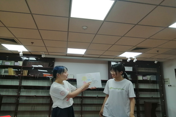 党支书讲党课的环节之后是党员们的自主学习展示活动,以铅笔画、水彩等绘画形式,创作与母校和祖国70年华诞相关的艺术作品,再进行展示。每位党员同志都积极投入,将北师大校徽、木铎、校训,以及标志性的北师大乌鸦、肥猫等元素融入画作,成果颇丰。