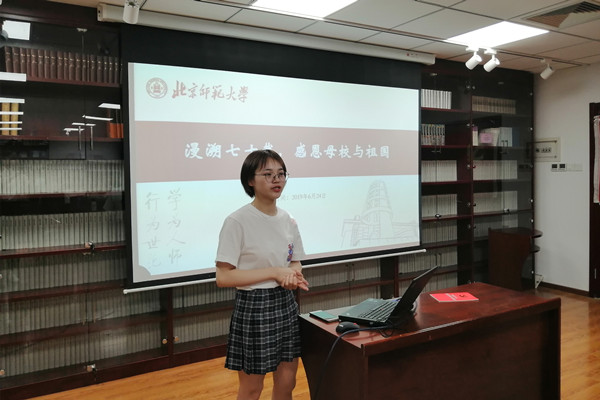 以新中国成立70周年为契机,彭紫荆党支书以“漫溯70年,感恩母校与祖国”为主题,在毕业之际,回顾70年来在时代洪流下屹立成长的母校437必赢国际官方网站,向祖国与母校表达我们毕业生的感恩之心、感激之情。党支书从最早的源头京师大学师范馆开始追溯,以1847-1956年、1957-1976年、1977-1980年、1981-至今四个阶段,结合我国不同时期的时代背景,大致梳理了我校百年的发展历程。通过结合国史与校史、历史与当下,彭紫荆同志认为在每个阶段,学校的发展或者挫折,都能够体现时代的痕迹,我们作为北师大的一员,始终带有北师大的烙印,希望大家在以后,珍惜北师大带给我们的光环,不忘初心,牢记使命。