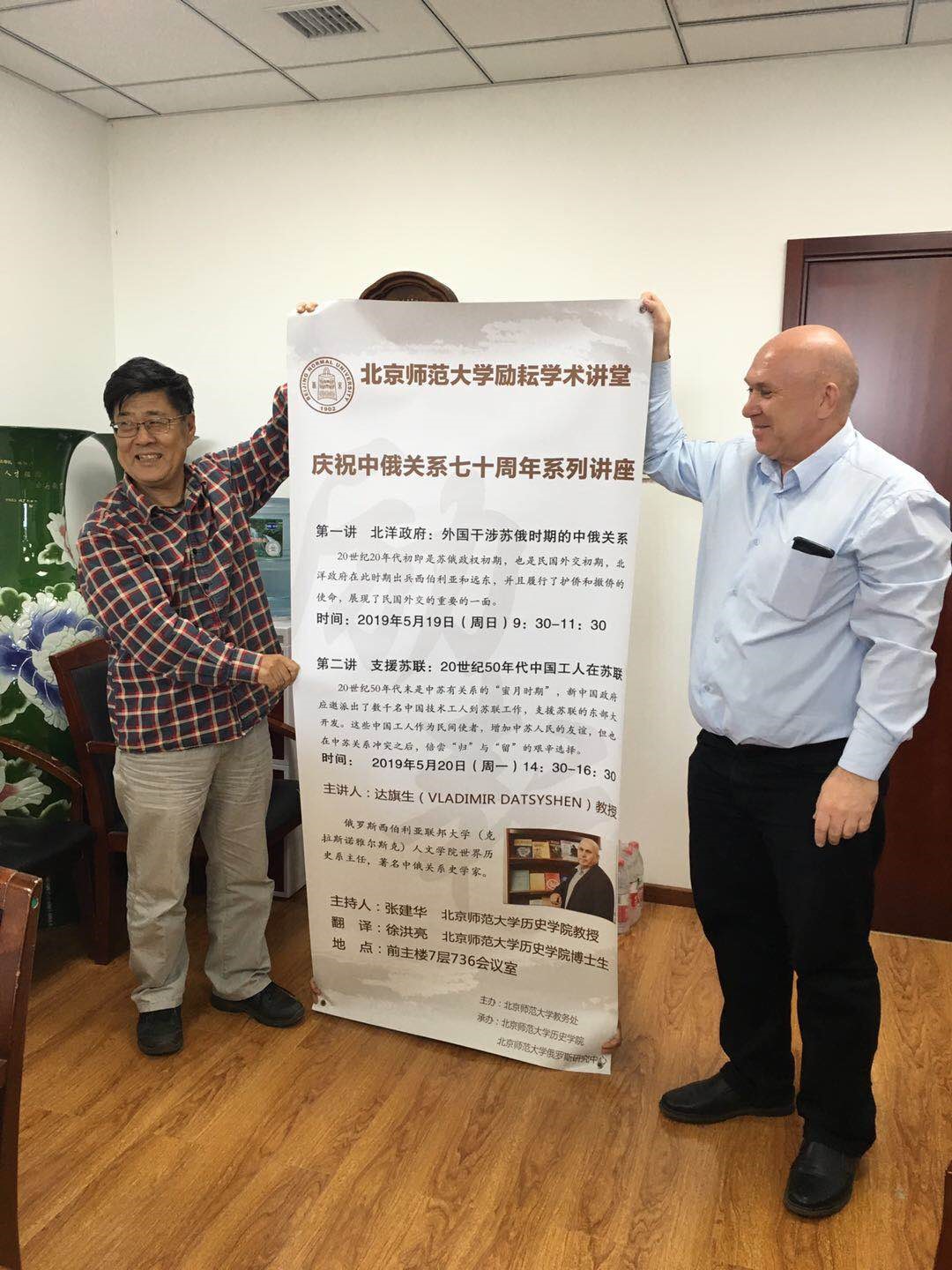 5月19日下午和5月20日上午,俄罗斯西伯利亚联邦大学人文学院达旗生教授在前主楼736会议室举办了《北洋政府:外国干涉苏俄时期的中俄关系》和《支援苏联:20世纪50年代的中国工人在苏联》两场庆祝中俄关系七十周年系列学术讲座。