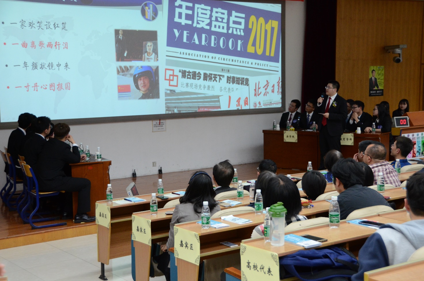 总决赛以2017年度时事知识盘点为主线,包括世界之旅、人物今昔、人物荟萃、人物探微、今日亚洲等模块。选手们通过必答题、抢答题、互选题等丰富多彩的形式角逐最后的冠军。比赛过程紧张激烈,选手们思维活跃、语言风趣,台下不时传来阵阵掌声与笑声,各队比分交替上升,一次次将比赛推向高潮,在交锋中碰撞出思维与智慧的火花。