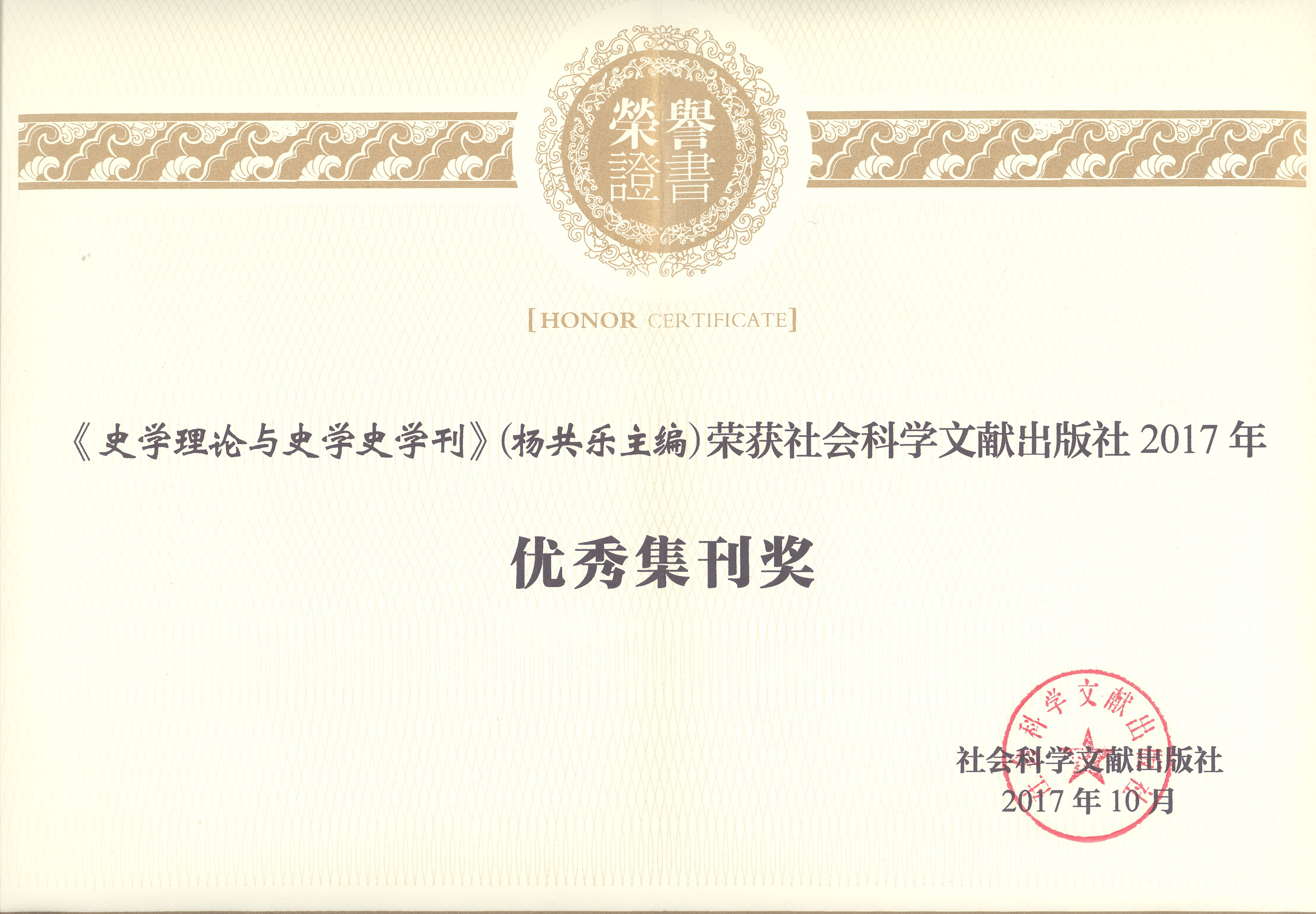 《史学理论与史学史学刊》荣获社会科学文献出版社2017年优秀集刊奖