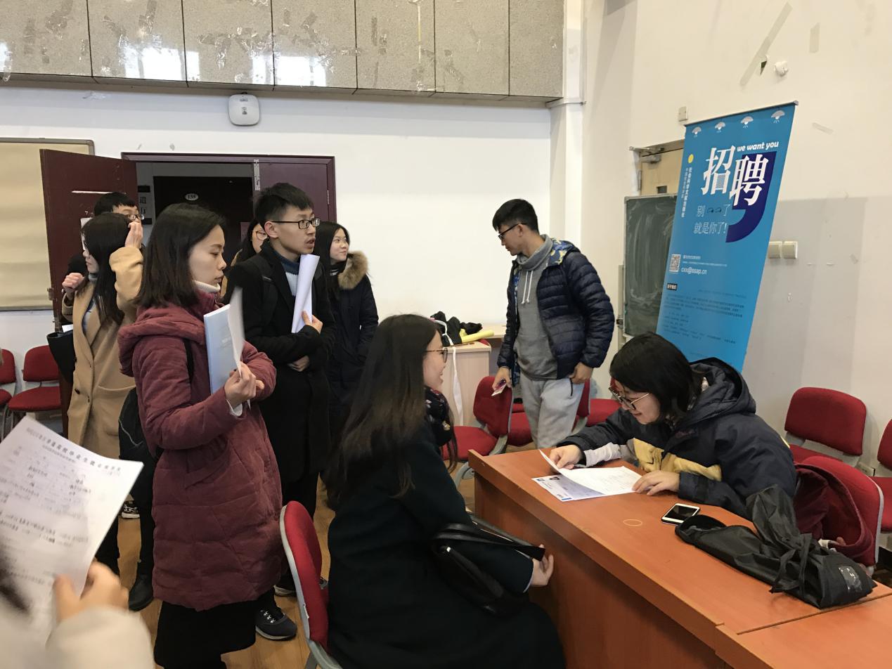 为加强用人单位与我校毕业生之间的交流,丰富大学生社会工作经验,增强就业竞争力,2017年12月1日下午两点半,北师大历史学院、文学院、哲学学院联合组织的校园专场招聘会在学生就业与创业指导中心140室成功举办。